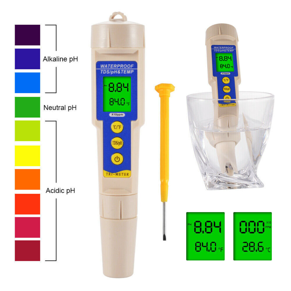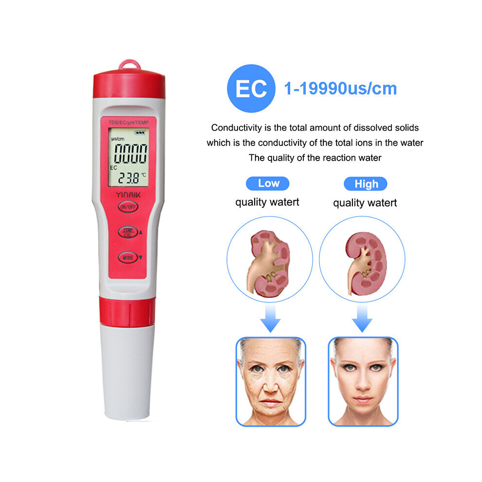 Digital Tester PH/TDS/EC/°C 4in1 Temperature Meter Water Quality Monitor Tester