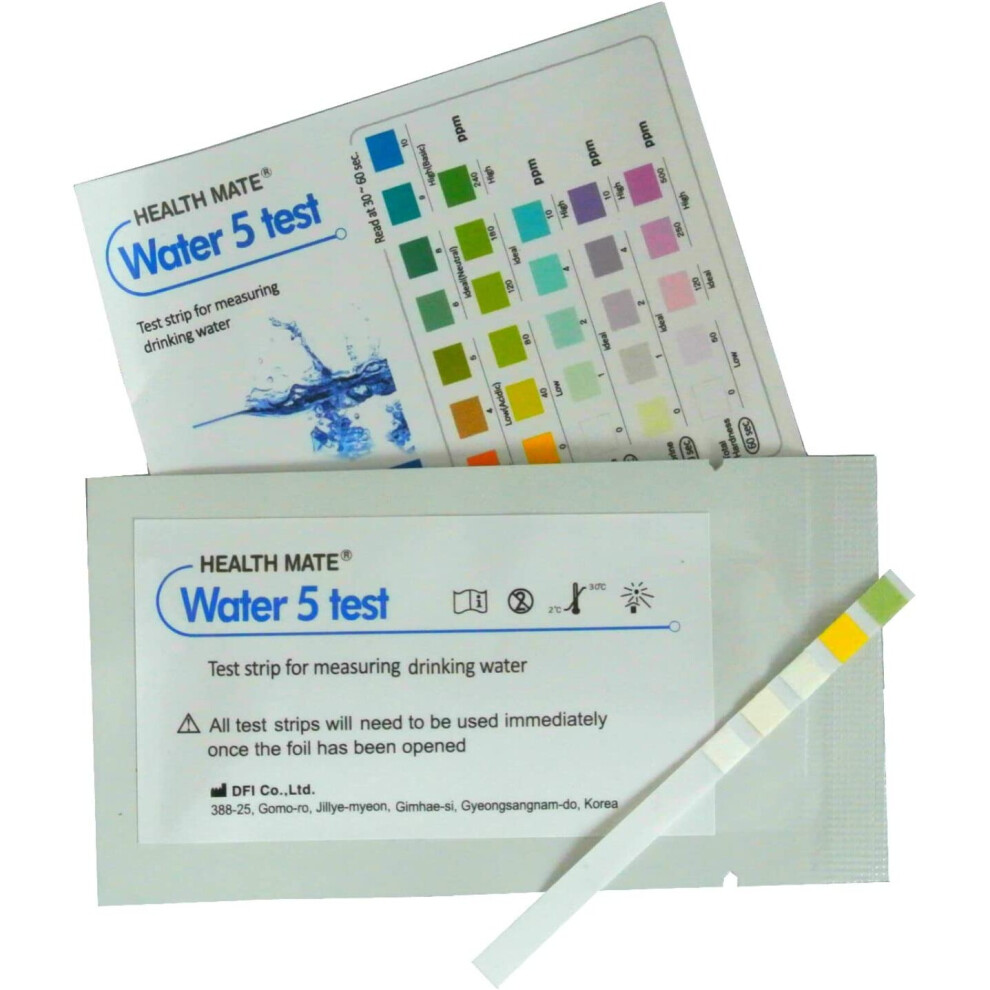 Water Test Kits for Drink Water, Hardness Testing Strips, Alkalinity, Chlorine, pH Tester (5 Test Strips)