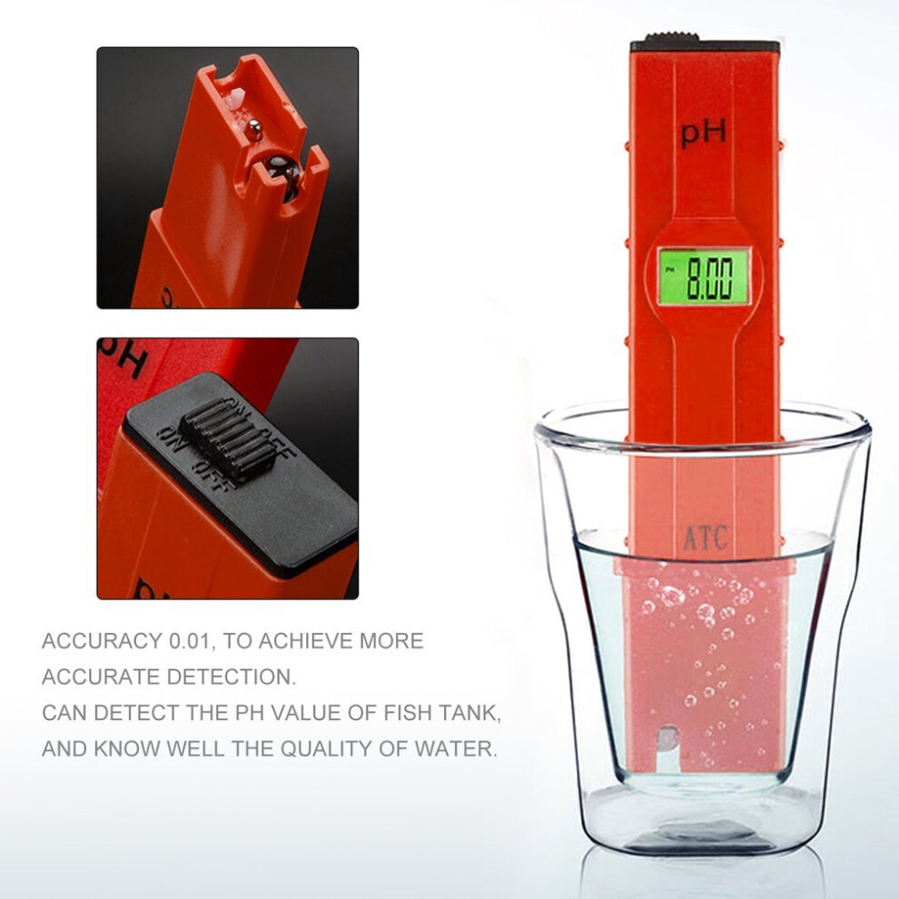 Protable Digital PH Meter Pen, 0.00-14.00 Measurement Range LCD PH Tester 0.01 Resolution PH Meter Aquarium Pool Water Wine Tester Tool with Auto Calibration
