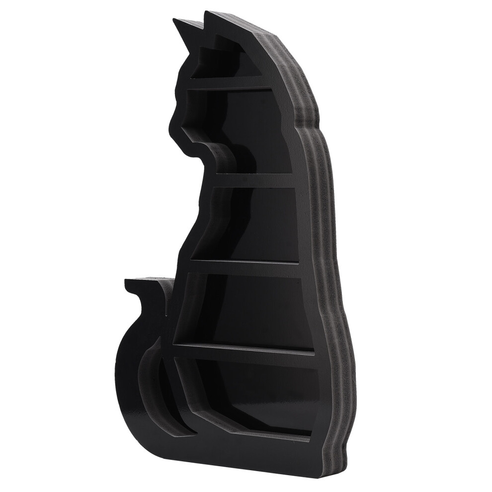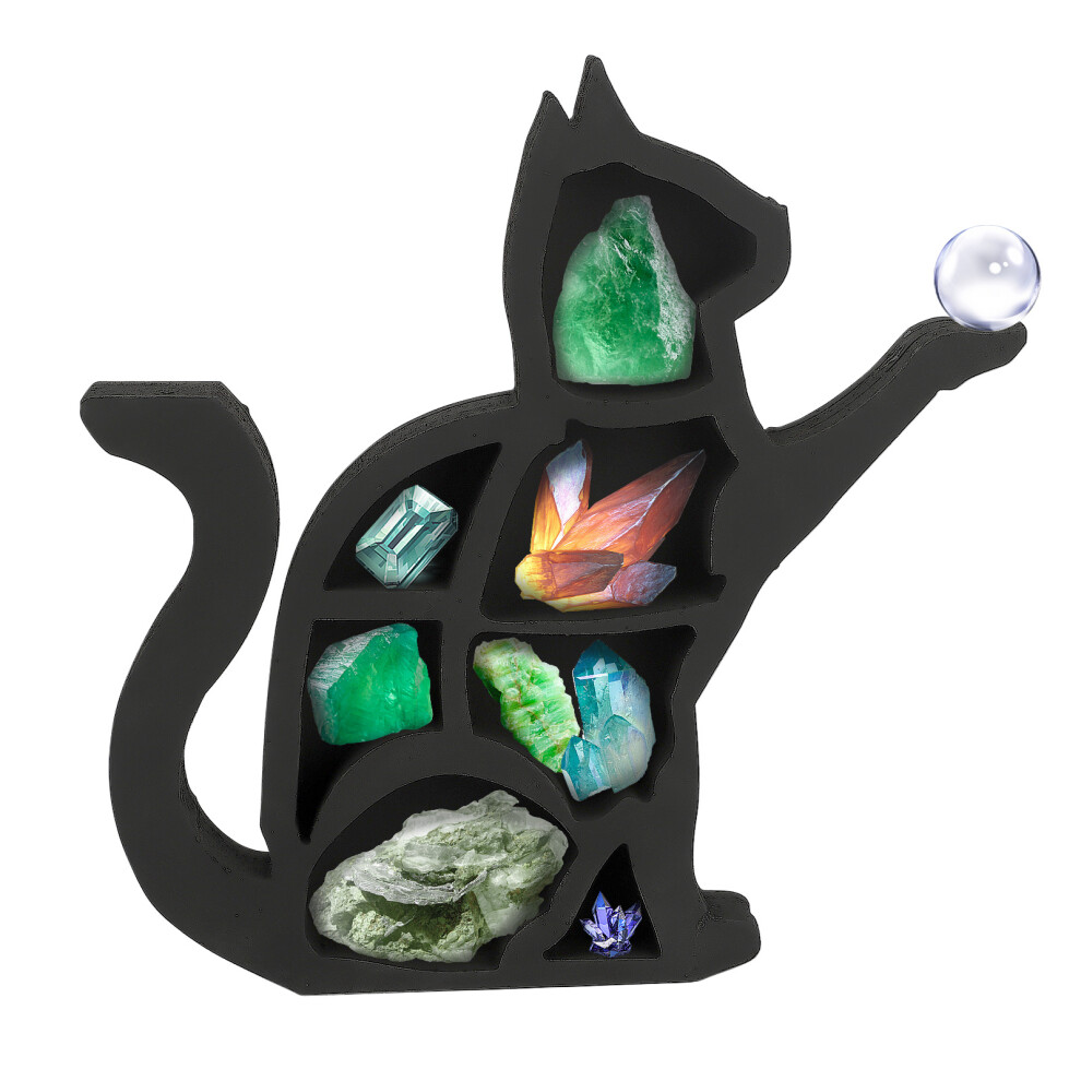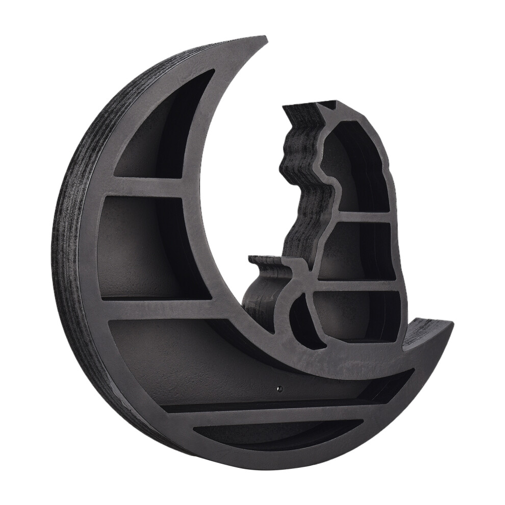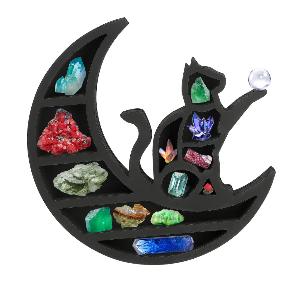 Moon Phase Crystal Display Wooden Shelf For Stones And Essential Oils Black Cat Decorative Stand Elegant Crystal Holder With Gothic Aesthetic Unique G
