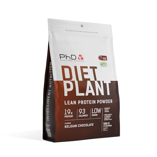 PhD Nutrition Diet Plant, Vegan Protein Powder Plant Based, Belgian Chocolate, High Plant Protein, 20 Servings Per 500g Bag