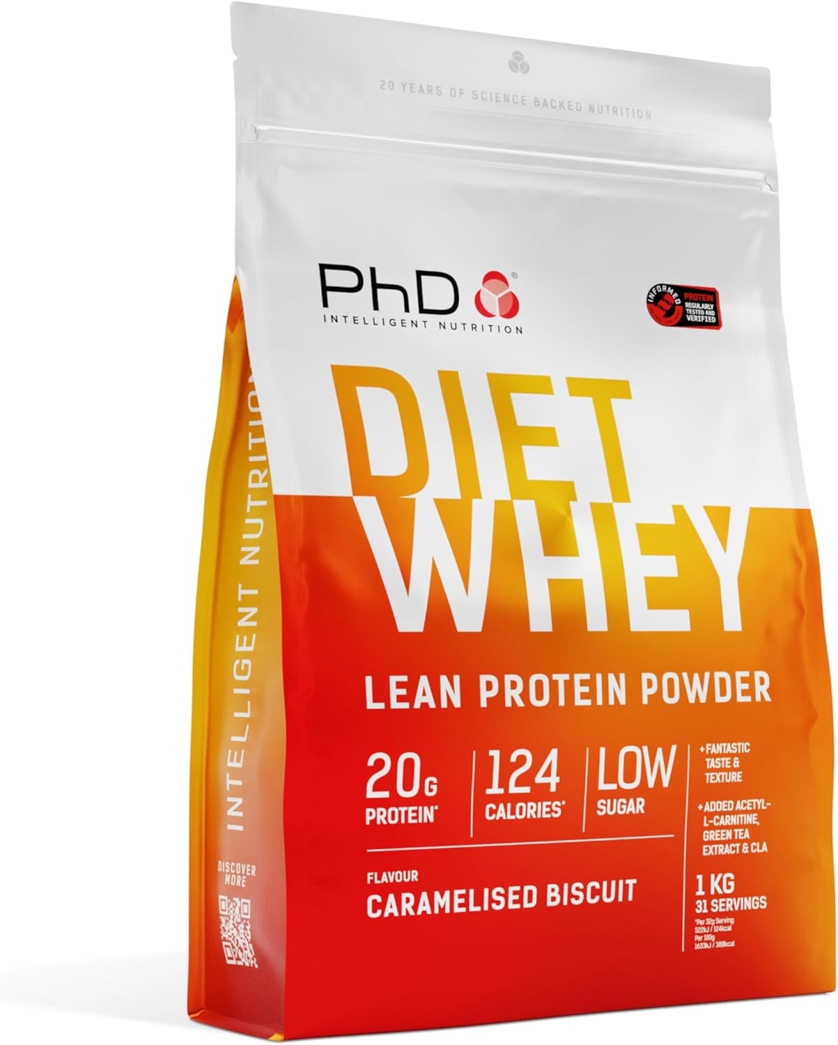 Phd Diet Whey Protein Powder Low Sugar Low Fat High Protein with Added CLA L-Carnitine and Green Tea Extract High in 100% Recyclable 2 kg Bag