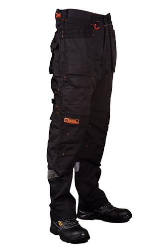 Black Hammer Mens Work Trousers Multi Pockets Cargo Heavy Duty Triple Stitched with Cordura Reinforcing Stress Points and Knee Pad Pockets Phenomenal Adult Workwear Trousers (28W / 33L) Black