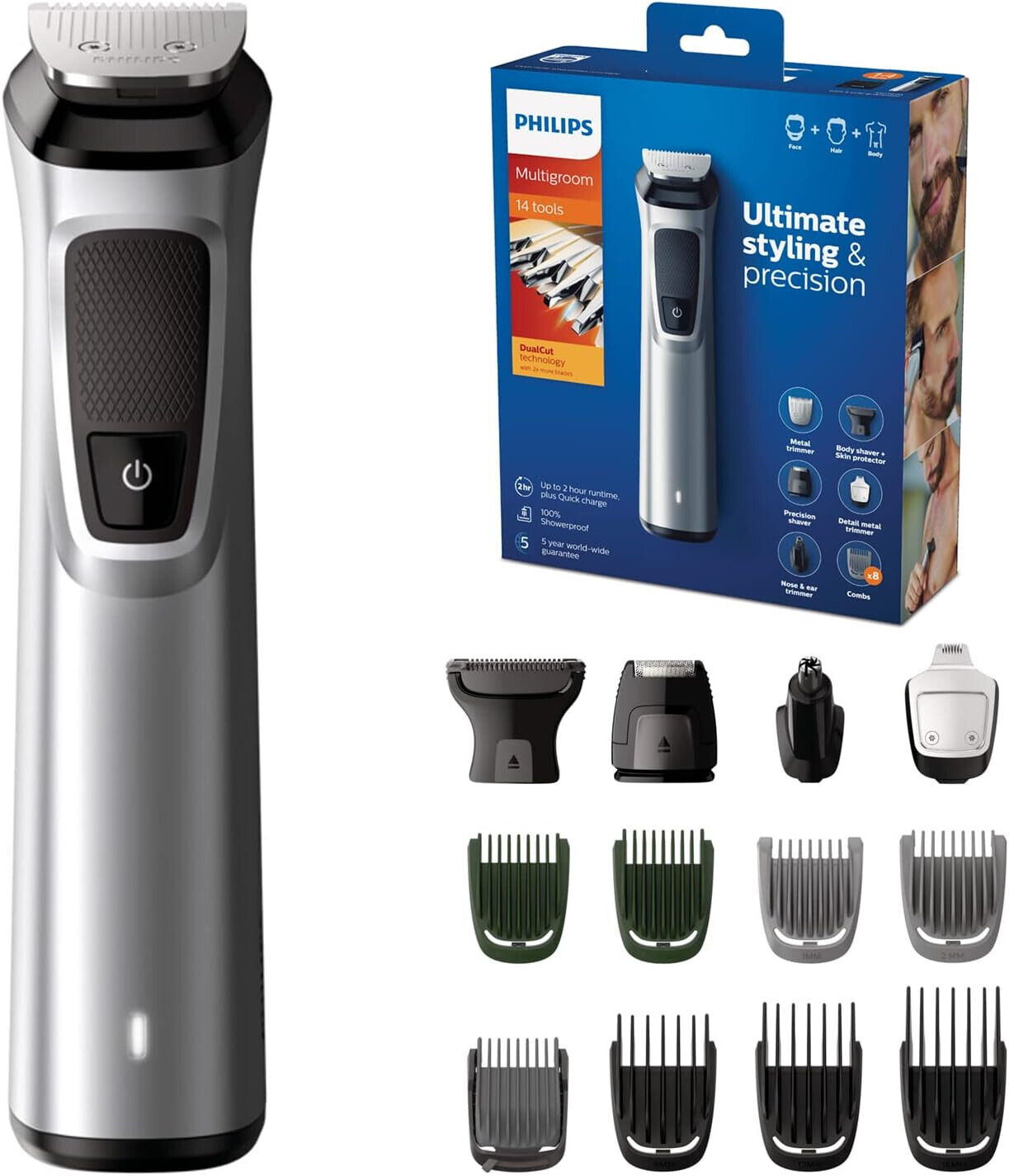 Philips Multigroom 7000 Series All-in-One 16-Piece Trimmer - Shaver and Clipper for Face, Head & Body, Self-Sharpening Full Metal Blades, 21 Length Settings (0.5-16 mm), Model MG7931/15