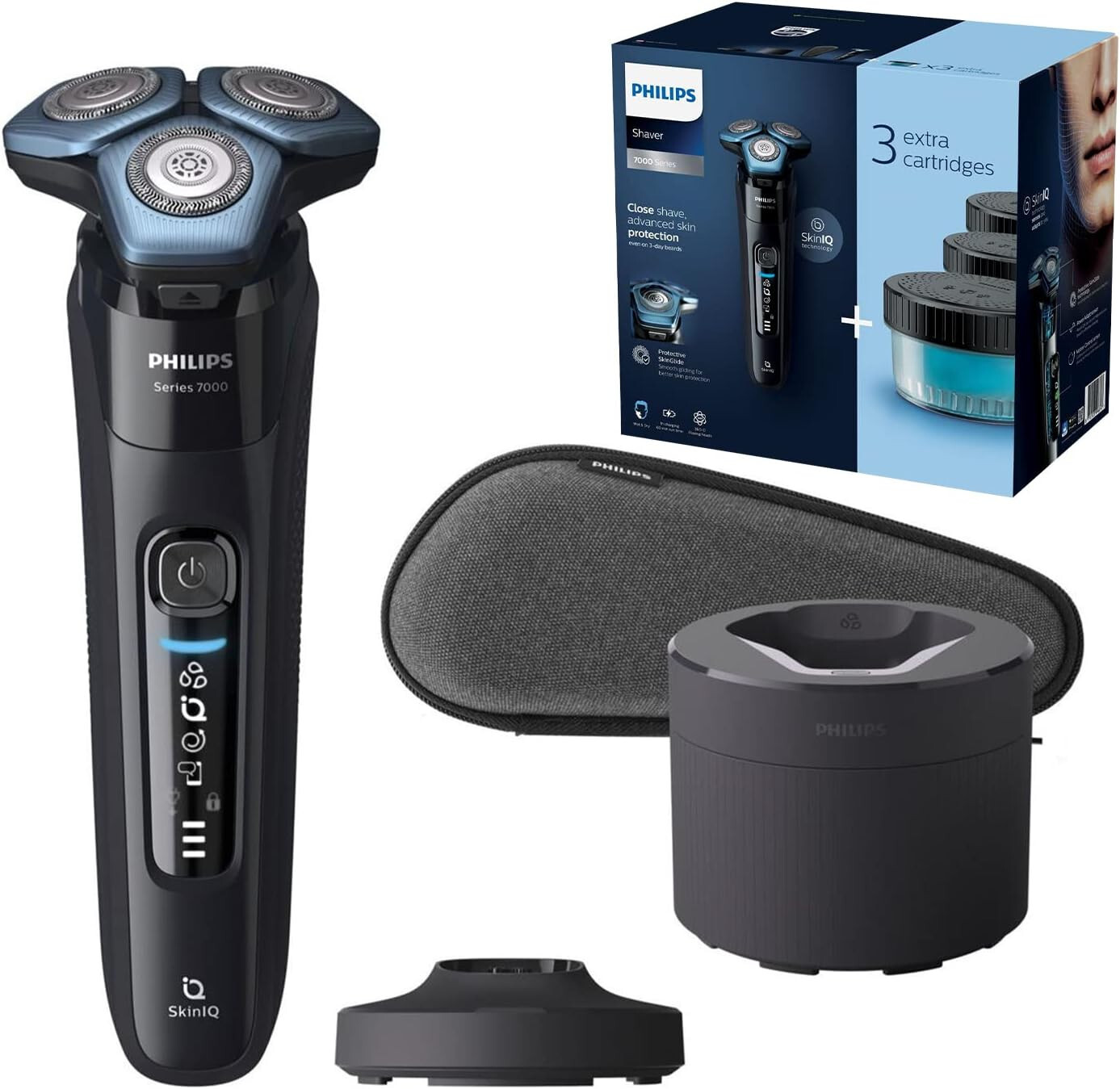 Philips Shaver Series 7000 - Wet & Dry Men's Electric Shaver with SkinIQ Technology, Razor with Pop-up Trimmer, Charging Stand, Travel Case, Quick Clean Pod and 4X Cartridges (Model S7885/63)