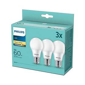 Philips Klassisk LED-standard 7W 827, 806 lumen, E27, matt, (3-pack)
