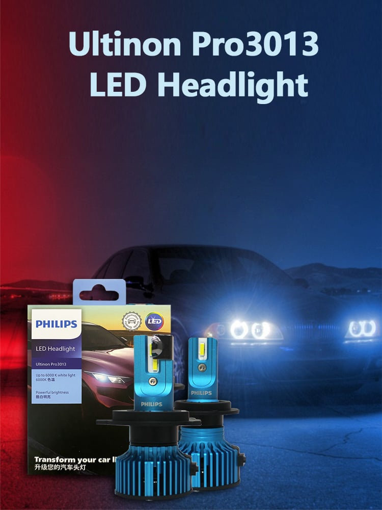 Philips LED H4 H7 Ultinon Pro3013 Car Headlight 6000K Cool White Bulbs 12/24V Power Bright Light Original Upgrade LED Lamps