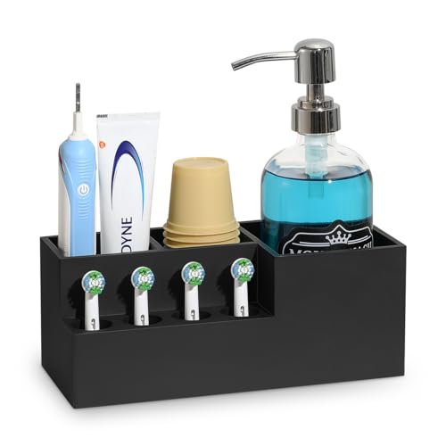 Luxspire Electric Toothbrush Holder, Toothbrush Holders Toothpaste Razor Holder with 4 Electric Toothbrush Head Holder Compatible With Oral B Philips Sonic Toothbrushes Bathroom Organizer, Matte Black