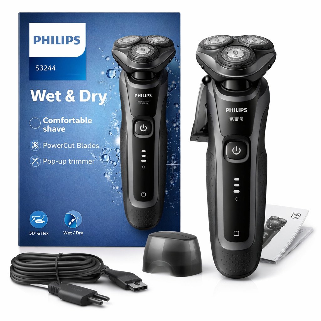 Philips S3244/12 Wet & Dry Electric Shaver – Cordless Rechargeable Razor for Men