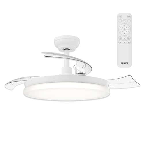 Philips Bliss Retractable-Blade Ceiling Fan with LED Light, 3 Blades, 106 cm Blade Wingspan, 4500 Lumens, Tunable White Light from 3000 K to 6500 K, Dimmable to 5%, Remote Control Included, White