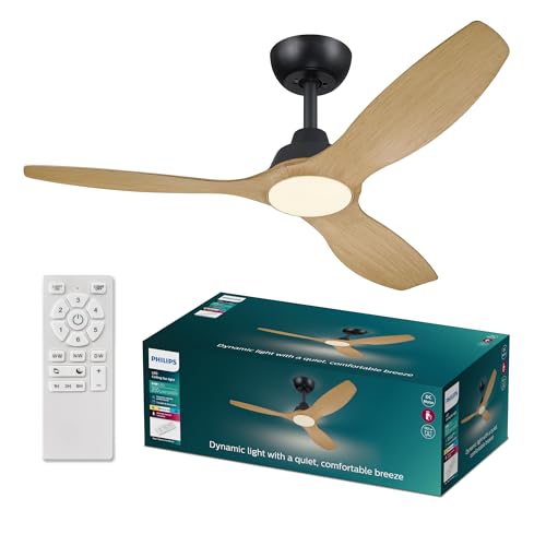 Philips Fixed Blade Fan Ceiling, 3 Blades, big (52") 28W LED Light, DC Motor, Color Temperature Range (3000 K, 4300 K, 6500 K) with Dimming Function, Remote Included