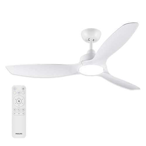 Philips Fixed-Blade Ceiling Fan with LED Light, 3 Blades, 132 cm Diameter, 2650 Lumens, Tunable White Light from 3000 K to 6500 K, Dimmable to 5%, Remote Control Included, White