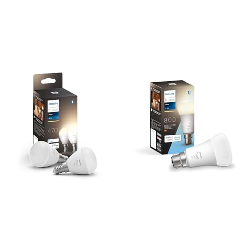Philips Hue New White Smart Light Bulb Lustre 2 Pack [E14 Small Edison Screw] & White LED Smart Light Bulb 1 Pack [B22 Bayonet Cap] Warm White - for Indoor Home Lighting