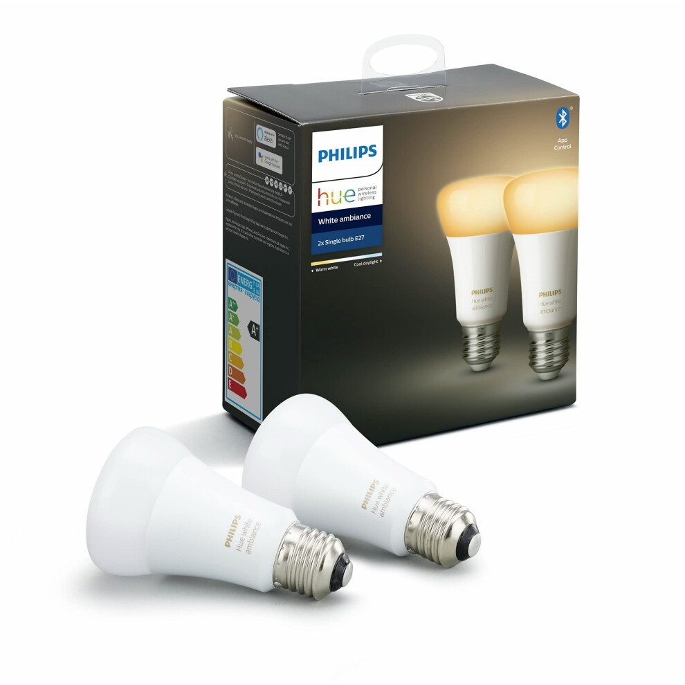 Philips Hue White Ambiance Smart LED Bulb Twin Pack [E27 Edison Screw] with Bluetooth, Works with Alexa, Google Assistant, and Apple Homekit