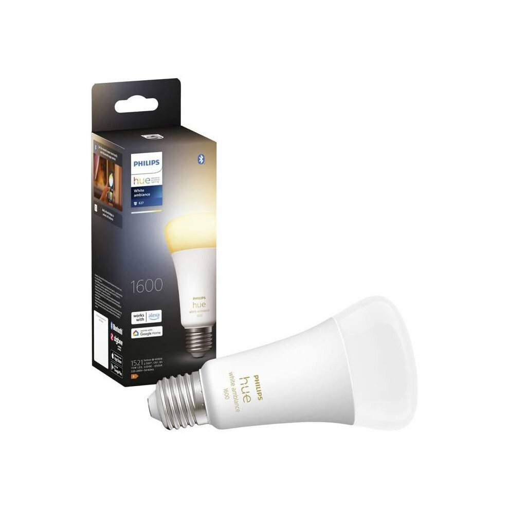 Philips Hue New White Ambiance Smart Light Bulb 100W - 1600 Lumen [E27 Edison Screw] with Bluetooth. Works with Alexa, Google Assistant and Apple