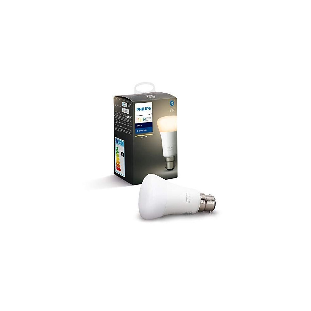 Philips Hue White LED Smart Light Bulb 1 Pack [B22 Bayonet Cap] Warm White - for Indoor Home Lighting, Compatible with Amazon Alexa Devices