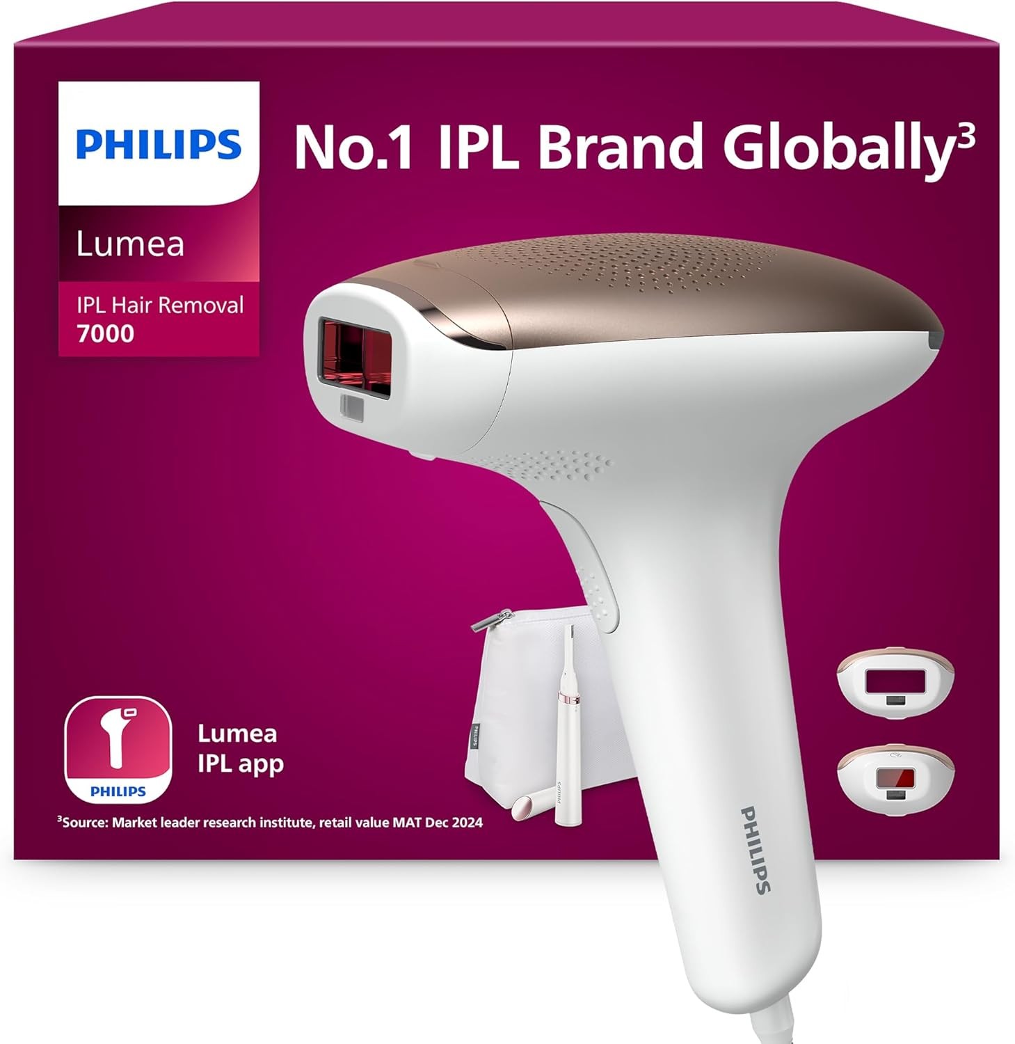 Philips Lumea 7000 Series IPL Hair Removal Device with Trimmer and Attachments