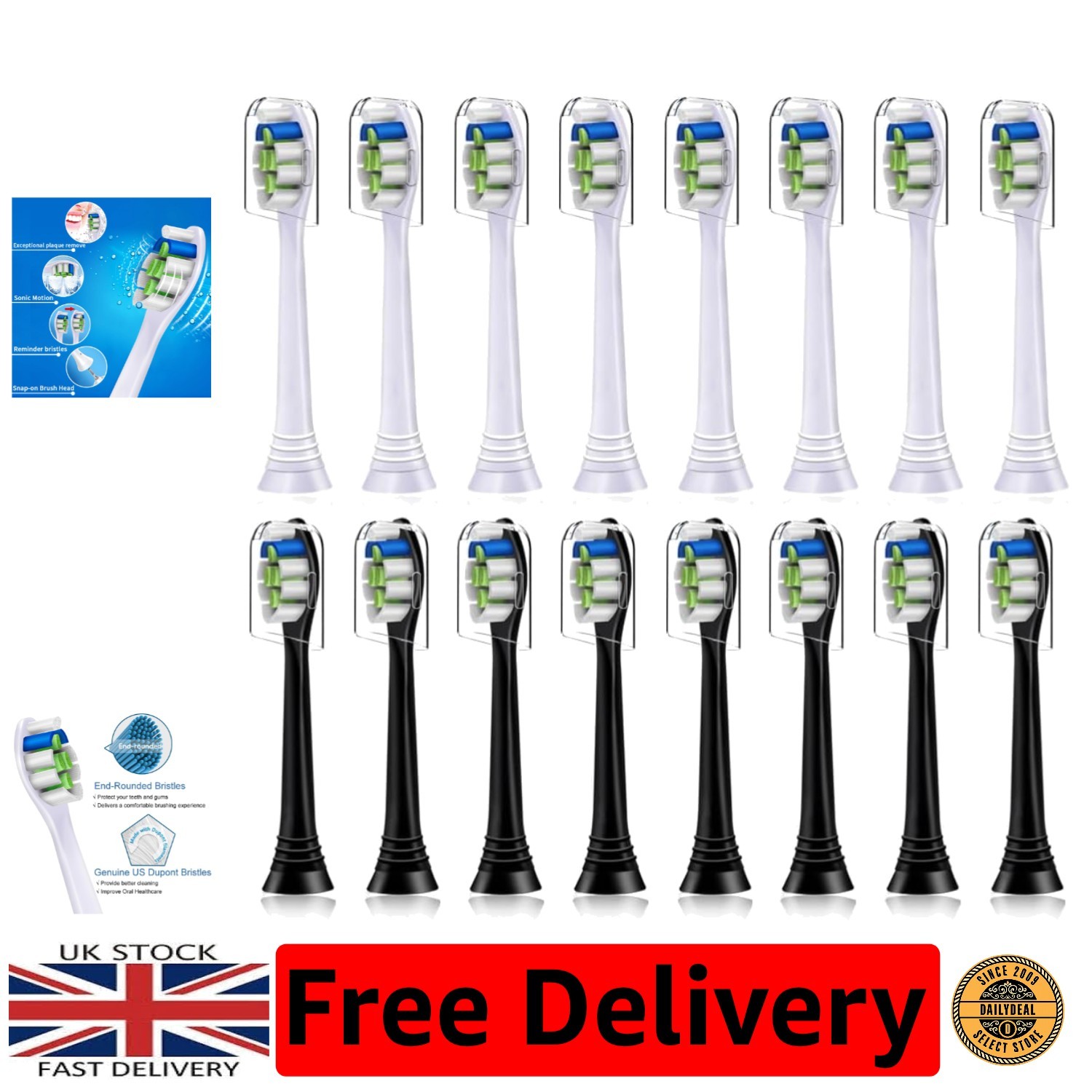 16 Pack Replacement Toothbrush Heads Compatible with Philips Sonicare Electric Toothbrush. 8er White and 8er Black