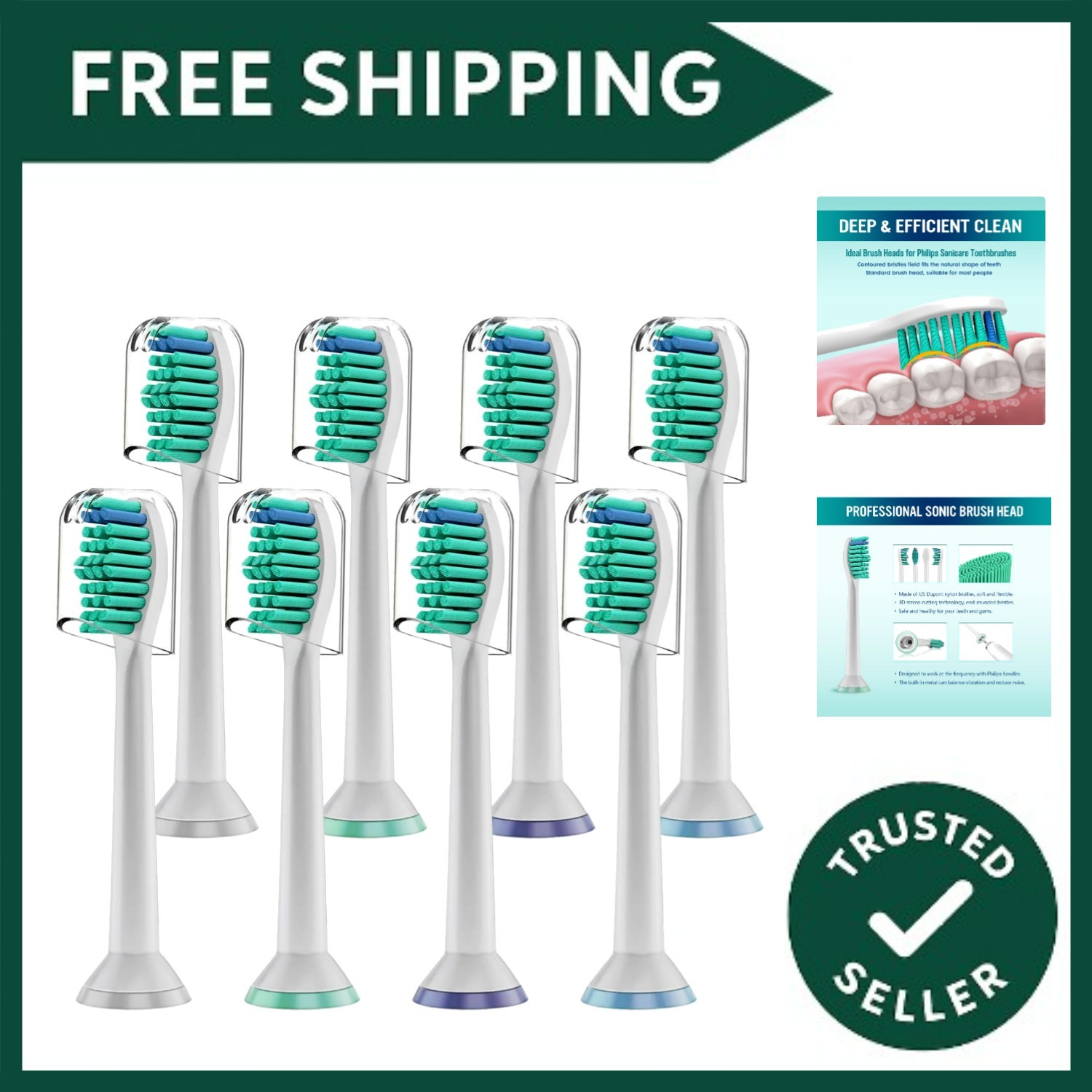 Gentle Cleaning 8 Pack Replacement Brush Heads for All Philips Sonicare Models