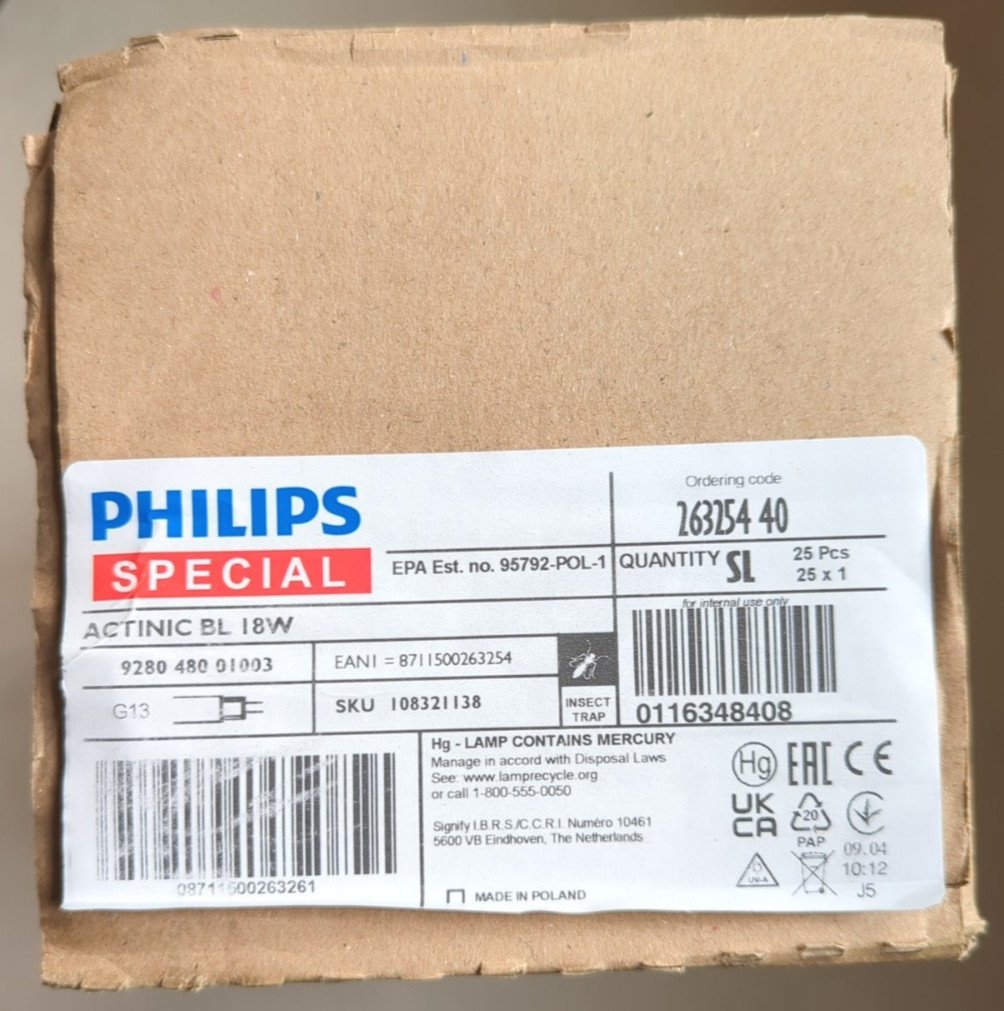 Philips T8 G13 Actinic BL 15W Blacklight 44cm BOX OF 25 - New