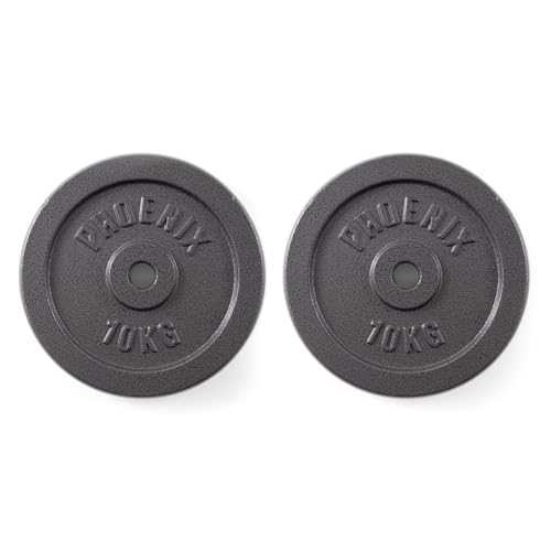 Phoenix Fitness Cast Iron Weight Plates - 1-Inch Free Weight Plate for Barbell Dumbbell Bars, Weightlifting & Strength Training at Home Gym - Pair, 10kg