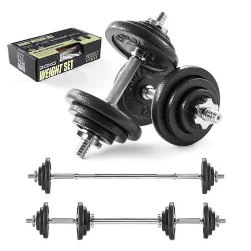 Phoenix Fitness 20kg Cast Iron Adjustable Dumbbell Barbell Weight Set Men Women Strength Training Equipment Home Gym Weight Lifting Free Weights Hand Weights