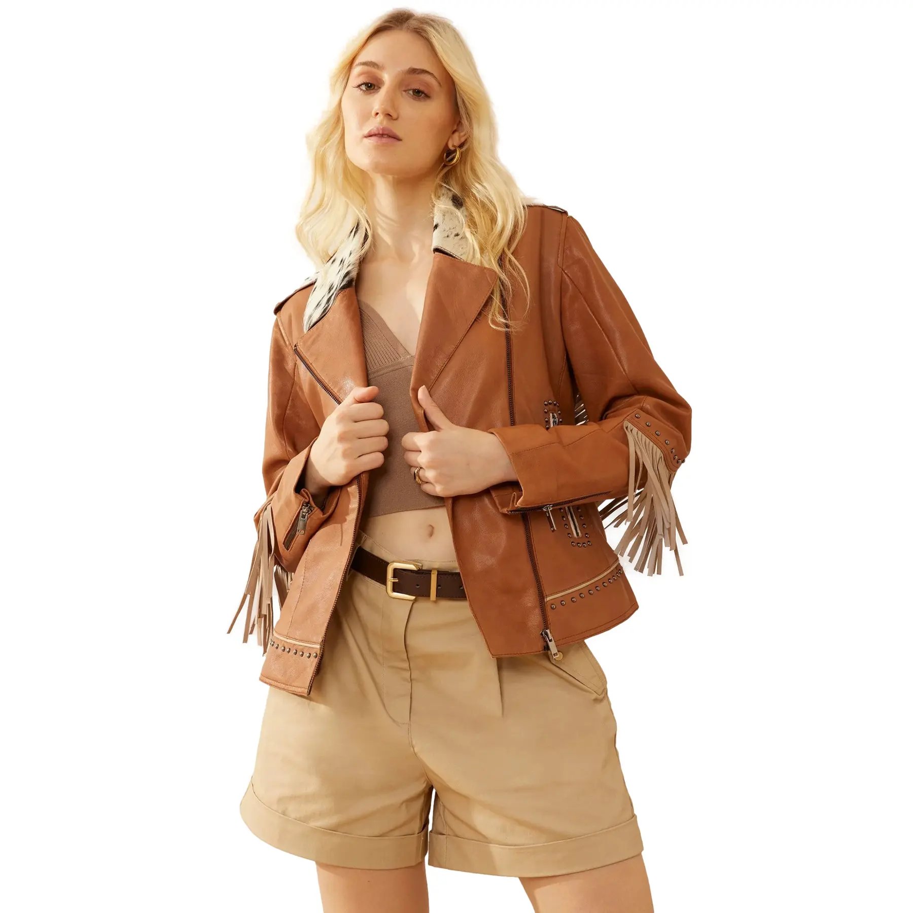 Women's leather jacket Myra Bag Phoenix Fringed