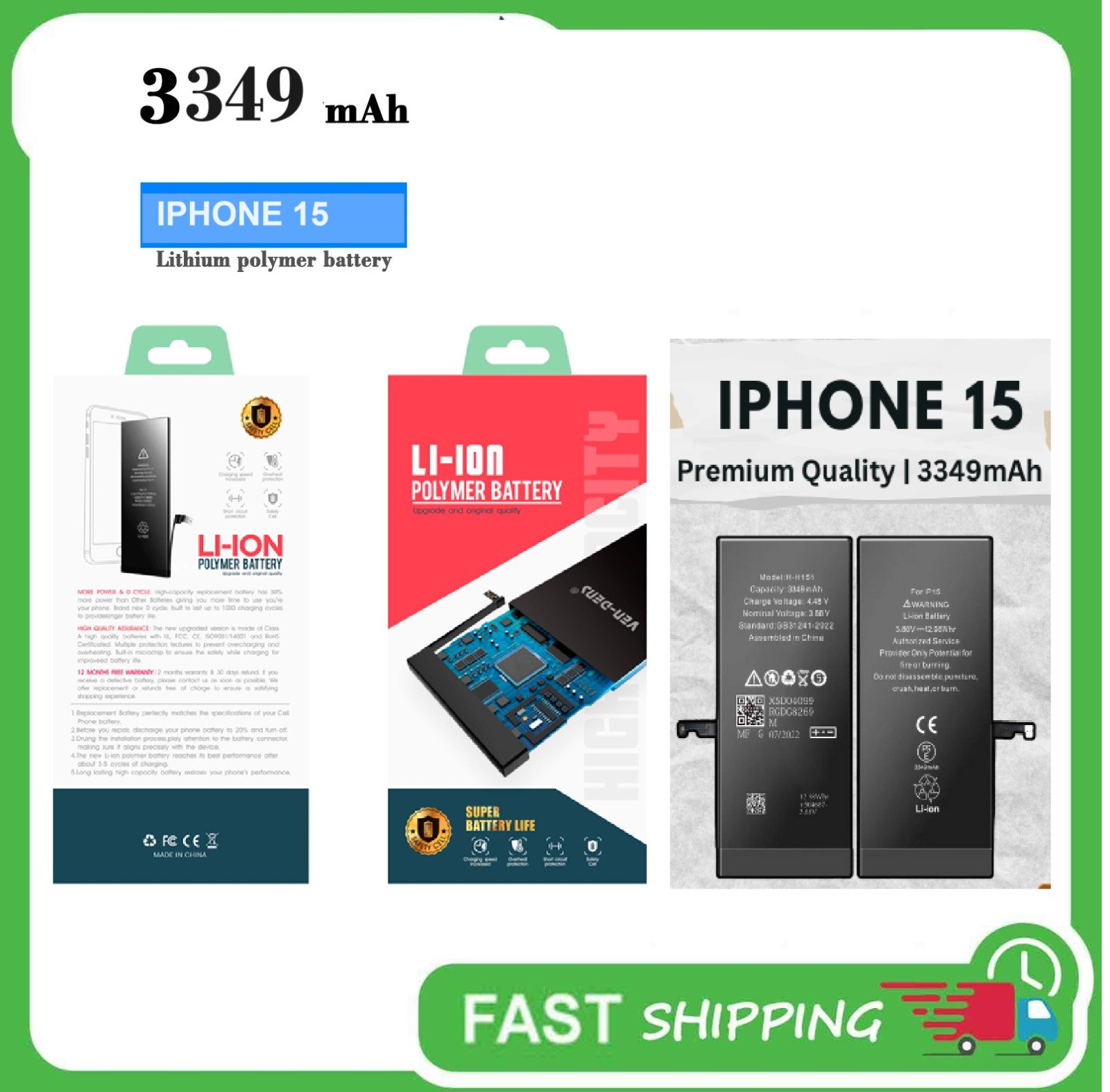 iPhone 15 Replacement Battery Premium Quality 3349mAh with Adhesive UK