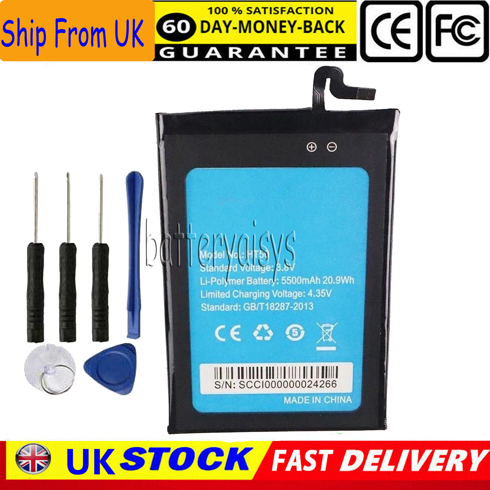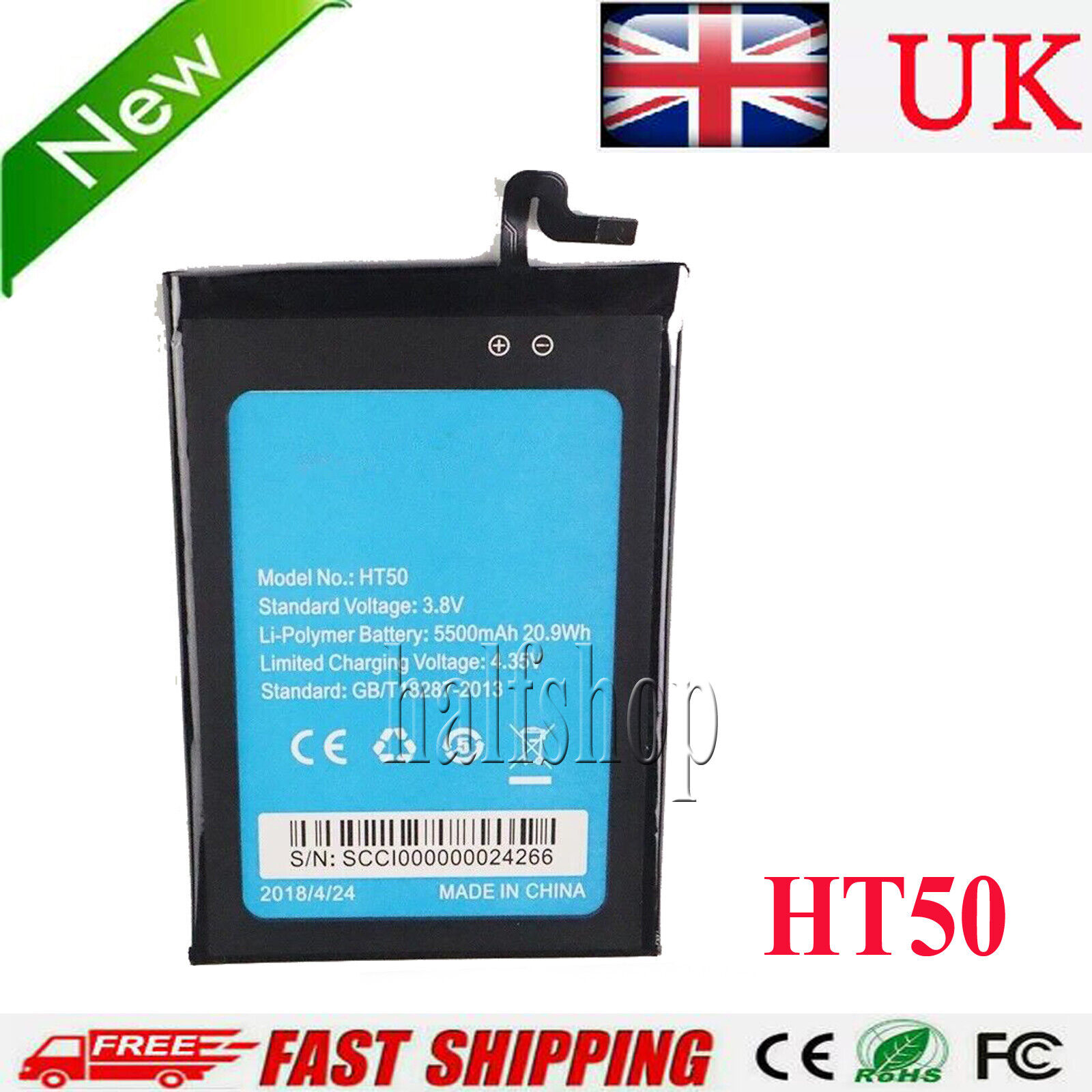 HT50 5500mAh Phone Replacement Battery For HOMTOM HT50 Smart Mobile Phone 5.5"