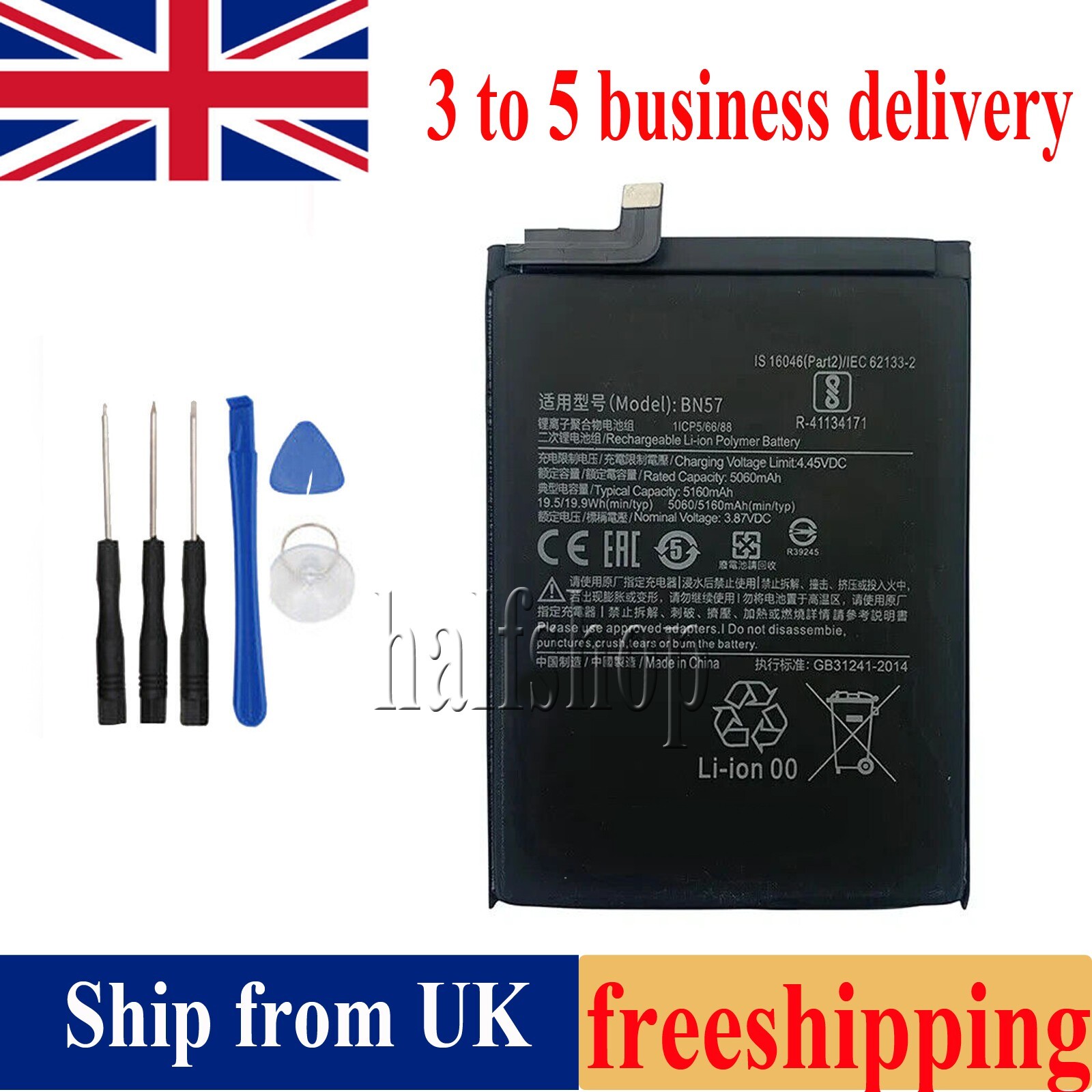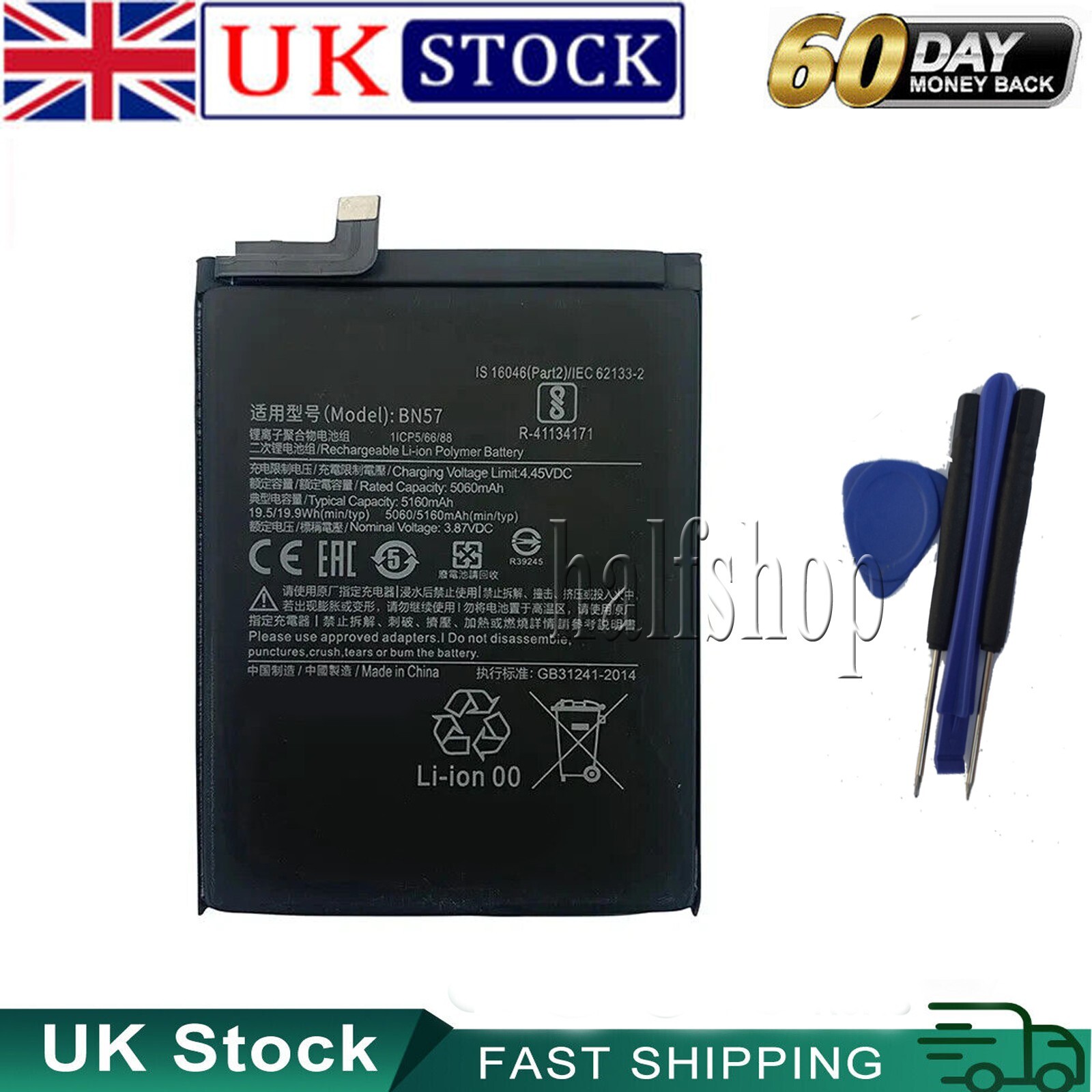 BN57 5160mAh Phone Replacement Battery for Pocophone X3 Poco X3 Pro Tools