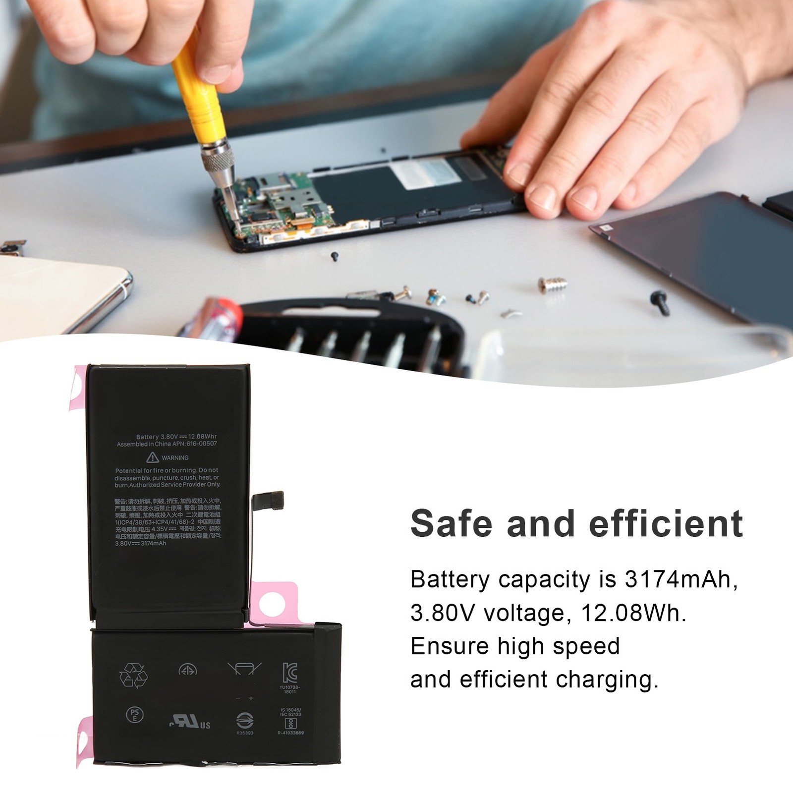 Phone Battery Replacement 3.80V 12.08Wh 3174mAh A1921 A2101 A2102 A2104 For Set