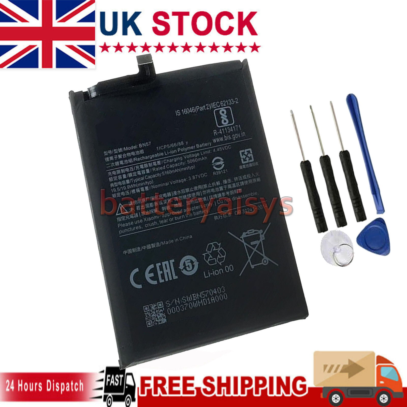 BN57 5160mAh Phone Replacement Battery for Pocophone X3 Poco X3 Pro+Tools