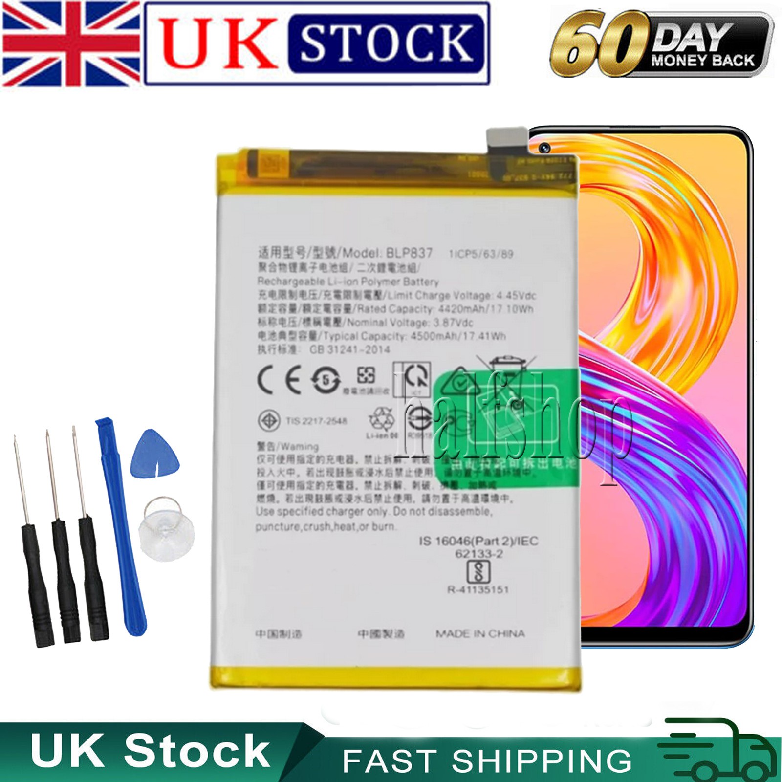 Mobile Phone Replacement Battery BLP837 For OPPO Realme 9 Pro/9 Pro