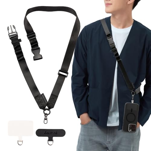 Golifyne 25mm Crossbody Phone Lanyard | Adjustable Phone Strap for Travel & Outdoor | w/ 2 Non-Adhesive Tether Tabs | Compatible with iPhone/Samsung/Huawei Smartphones (no cases included) - Black