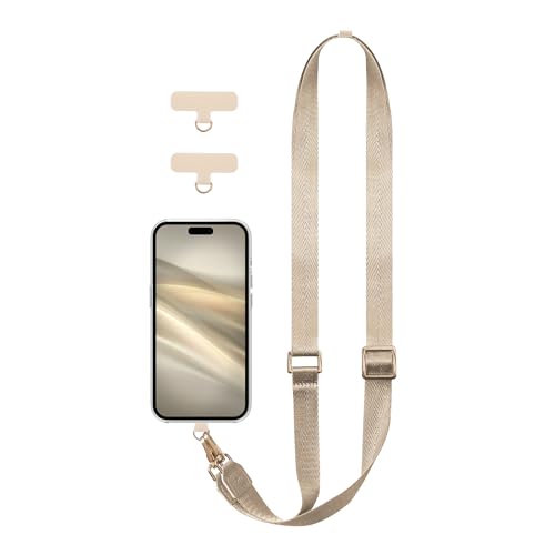 EKAX Adjustable Nylon Phone Lanyard with PU Leather Patch, Detachable Crossbody Lanyard, For Most Smartphones Phone Cases, Keychain, Camera, Multi-Use Strap (Beige (2-Piece Clip Set))