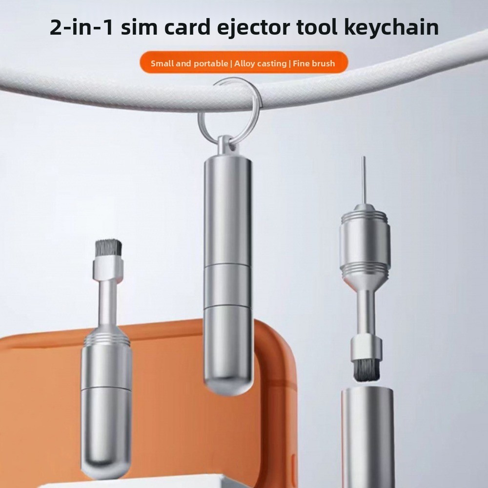 2 in 1 Metal Keychain SIM Card Tray Ejector Pin Earbuds Phone Cleaning Brush