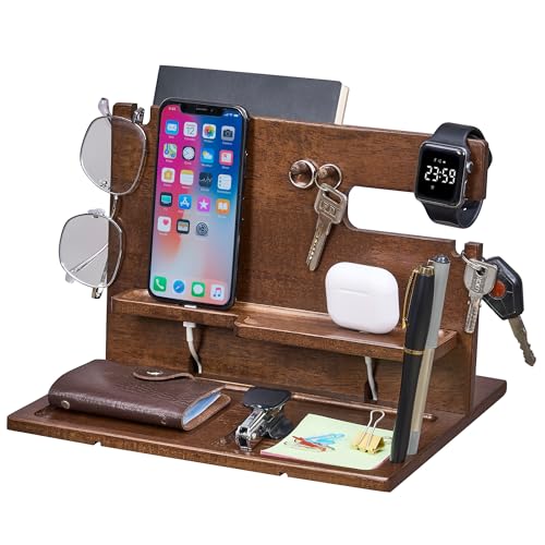 ANWBROAD Gifts for Men Wood Phone Docking Station Birthday Gifts for Him Desktop Storage Station Beside Organizer Holds Phone Watch Earbuds Pen Wallet for Home Office JBG005Z