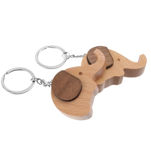 Ciieeo 2pcs Smartphone Stand Keyring Creative Solid Wood Lovely Elephant Ornament for Key Desktop Phone Holder for Filming Random Color
