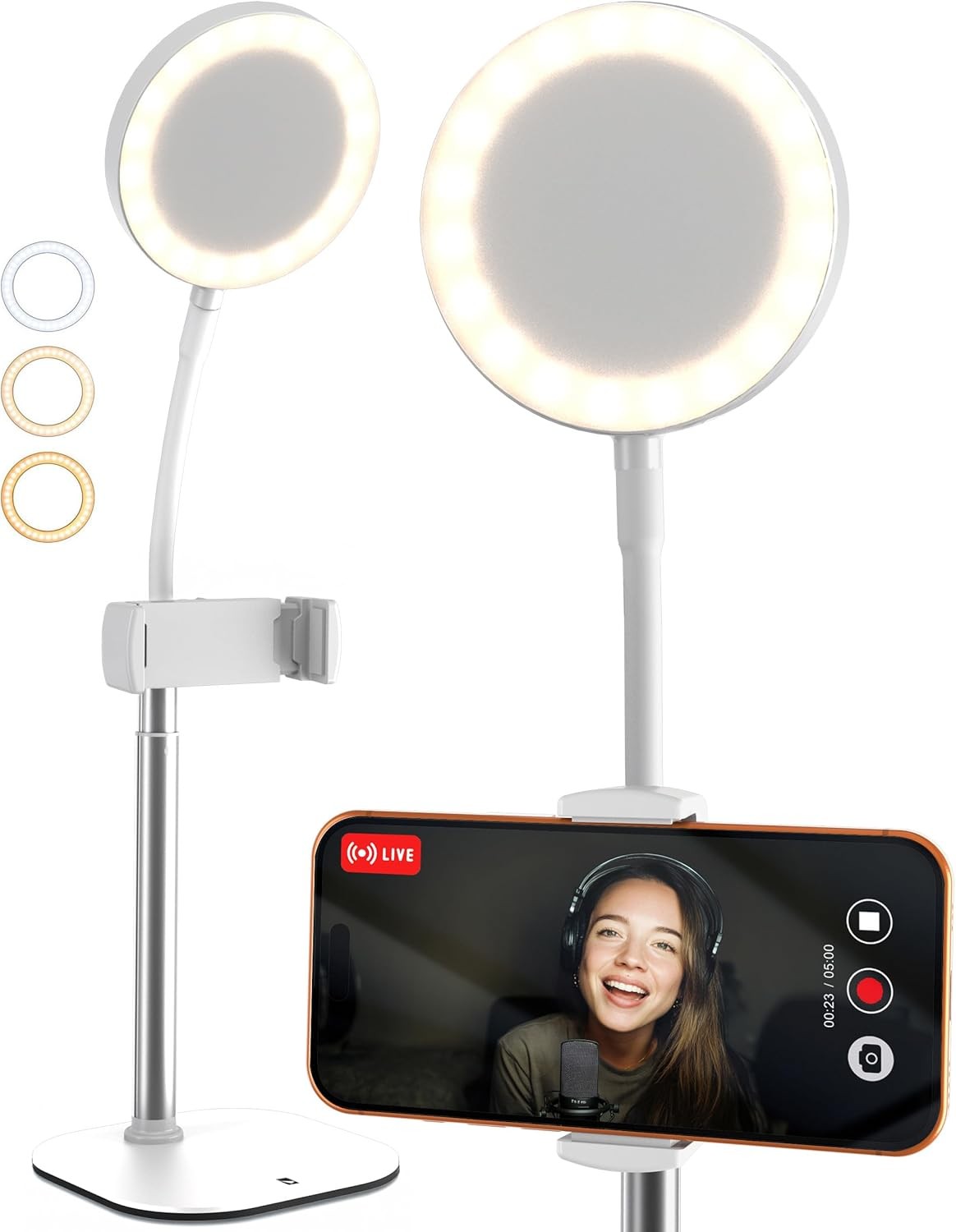 LitONES Desktop Video Conference Lights for Zoom Meetings,Computer Desk Ring Light with Stand Phone Holder,Dimmable Desk Lamp for Home Office,Video Lighting For Filming,Recording,Video Calls,Webcam