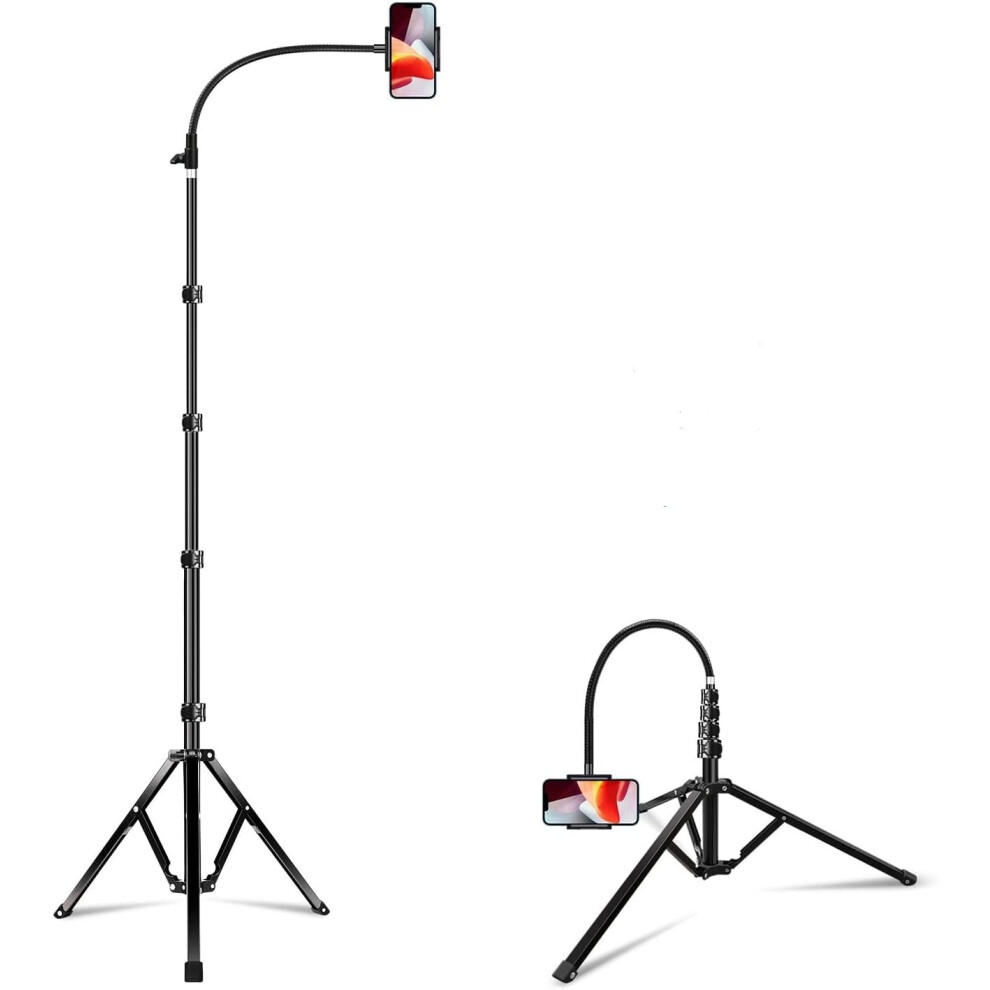 Elitehood 203cm Tall Heavy Duty Metal Tripod Stand for Filming, Gooseneck Overhead Tripod with 360?Rotation Phone Holder for iPhone 16/15/14/13/12 Pro