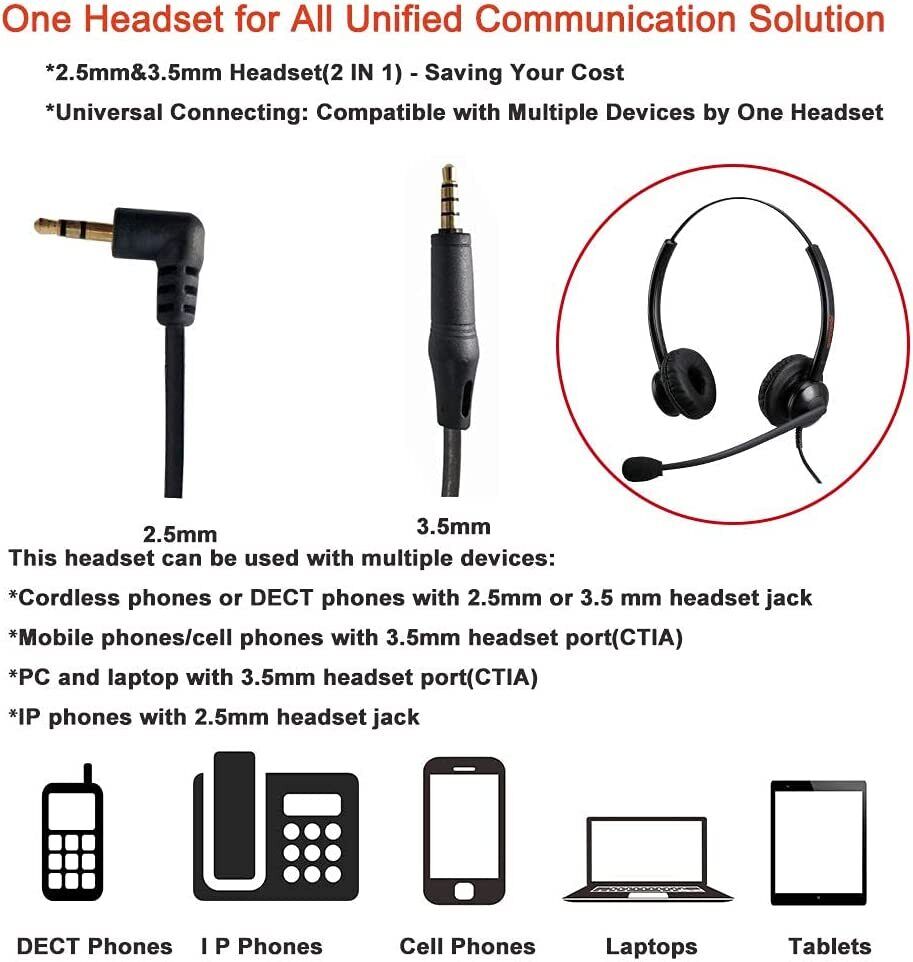 2.5mm Headset Headphones With Mic Call Center Telephone IP Phone Cisco DECT BT