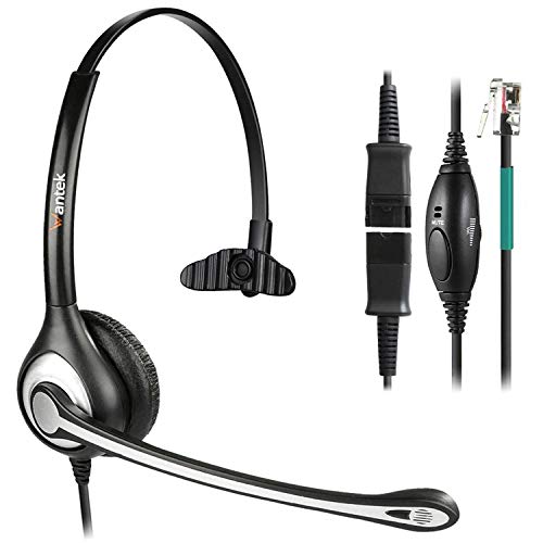 Wantek RJ9 Phone Headset with Noise Cancelling Mic + Quick Disconnect for Polycom VVX400 VVX410 VVX411 Mitel 5312 5320e Avaya 1120 1408 ShoreTel IP480 NEC Plantronics Landline Telephones(600QS2)