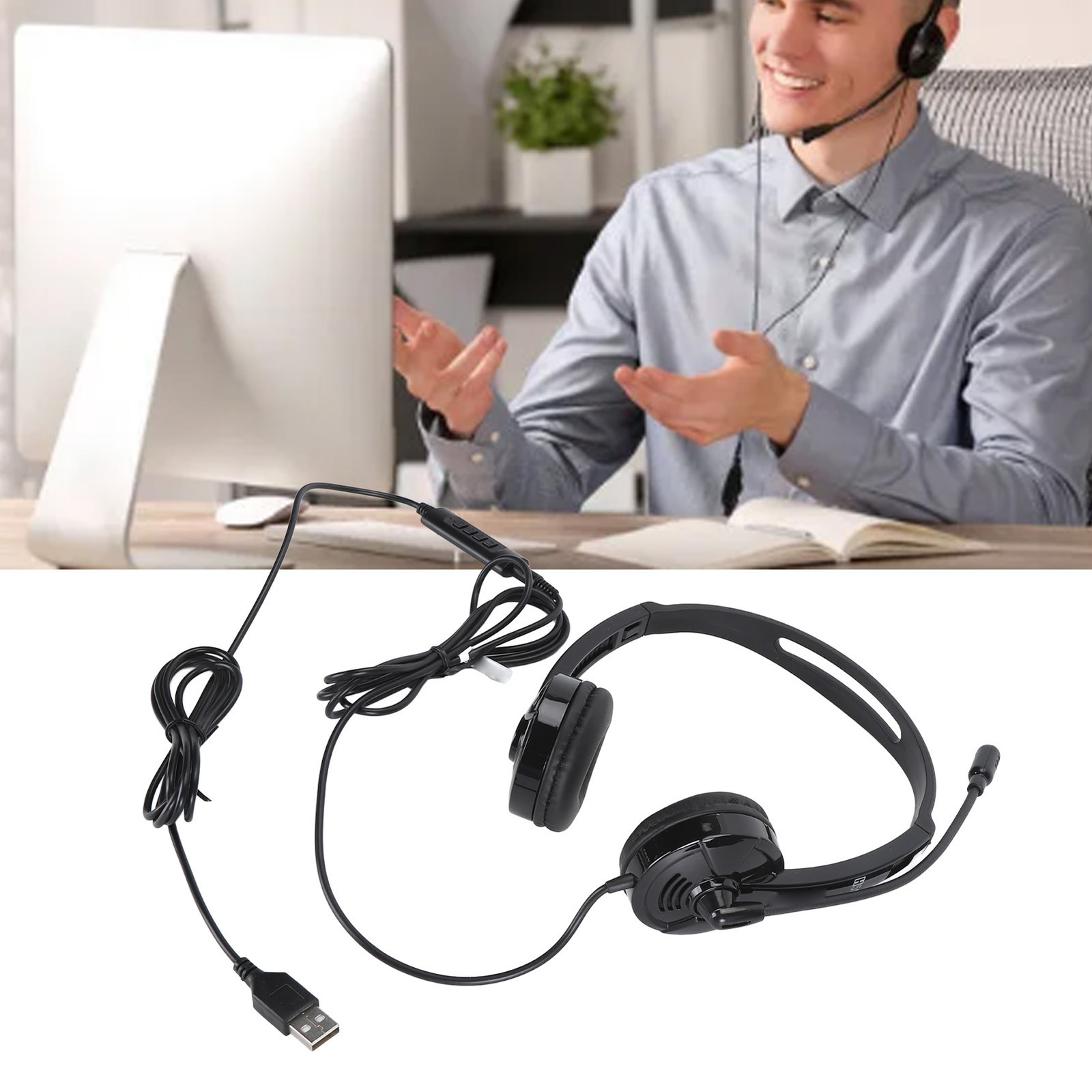 USB Headset, PC Headset with Mic with 3.5mm Jack Noise Cancelling Microphone, Lightweight Wired headphones with Mic for Call Center, Cell Phone, Computer, Office, Business, Skype, Zoom, Webinar
