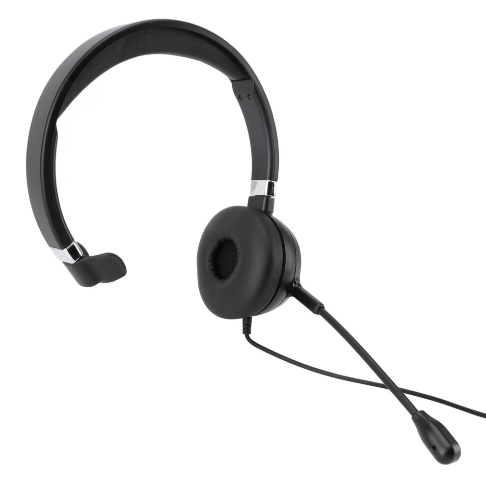 Black Corded Single Ear Phone Headset with Noise Cancelling Mic for PC, Laptop & Tablet