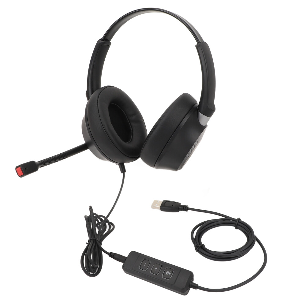 Noise Canceling Dual Ear USB Phone Headset with Mic for Office, Black