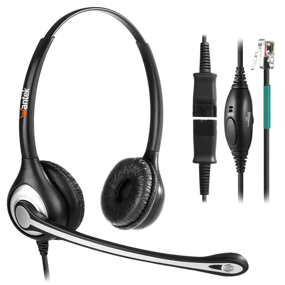 Wantek RJ9 Phone Headset with Noise Cancelling Mic + Quick Disconnect for Polycom VVX400 VVX410 VVX411 Mitel 5312 5320e Avaya 1120 1408 ShoreTel IP480 NEC Plantronics Landline Deskphones(602QS2)