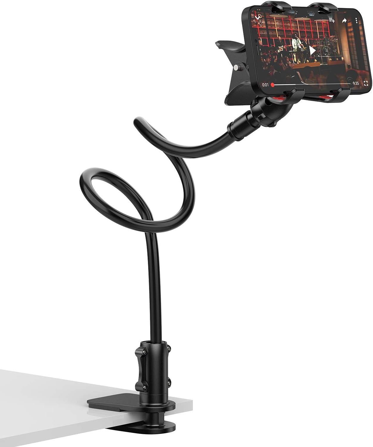 LONZOTH Cell Phone Holder, Gooseneck Phone Holder for Bed Clip Lazy Bracket Flex