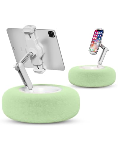 Viozon Tablet Stand with Pillow, Kindle Holder, Compatible with 4.7"-13" Phone/Tablet, iPad, iPhone, Google, Kindle, 360°Adjustable Phone Holder for Bed with Soft Plush Fabric, Detachable Bowl, Green