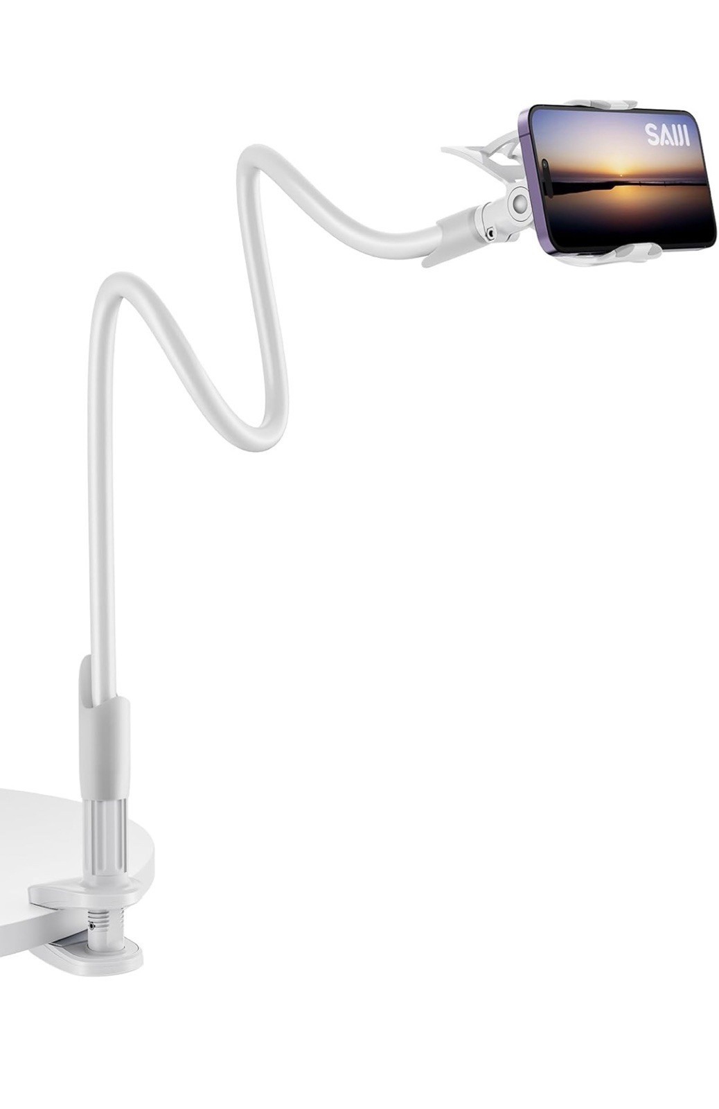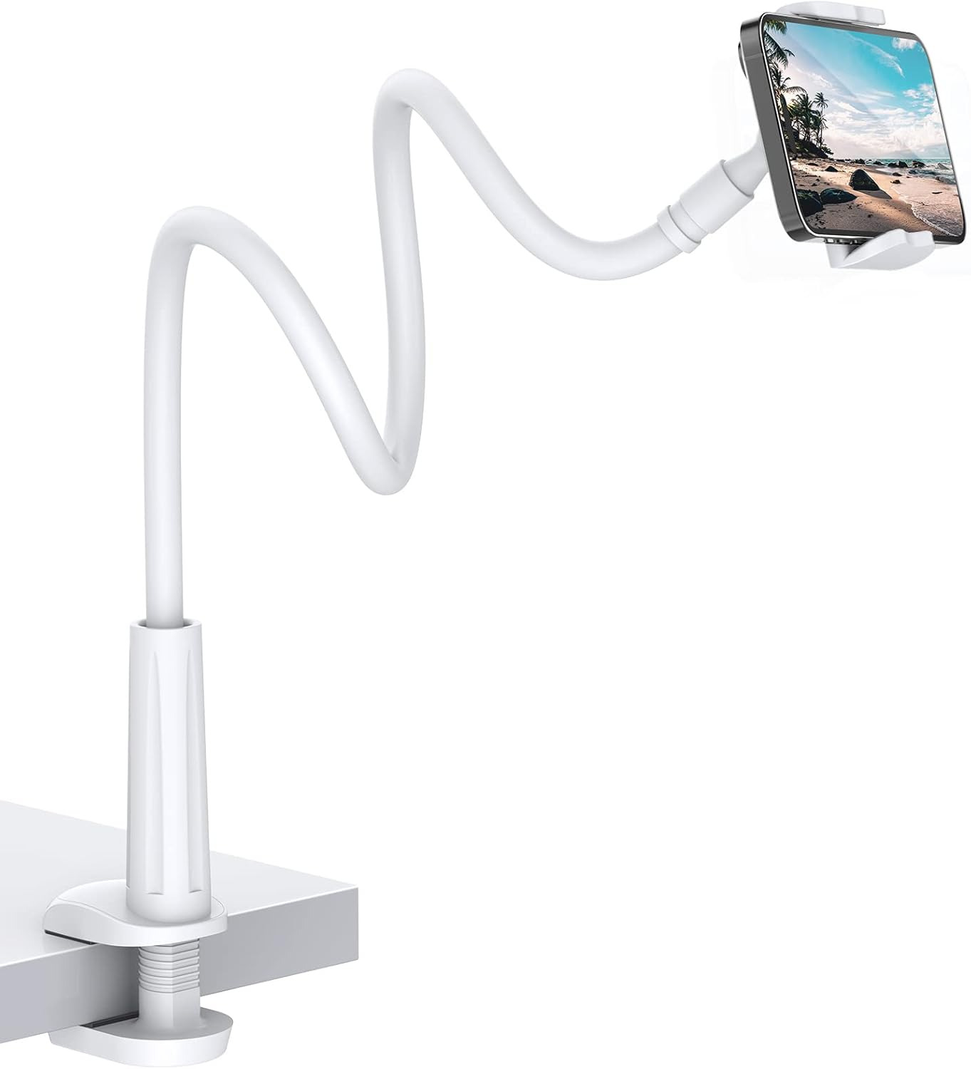 LONZOTH Cell Phone Holder, Gooseneck Holder for Bed Clip Lazy White