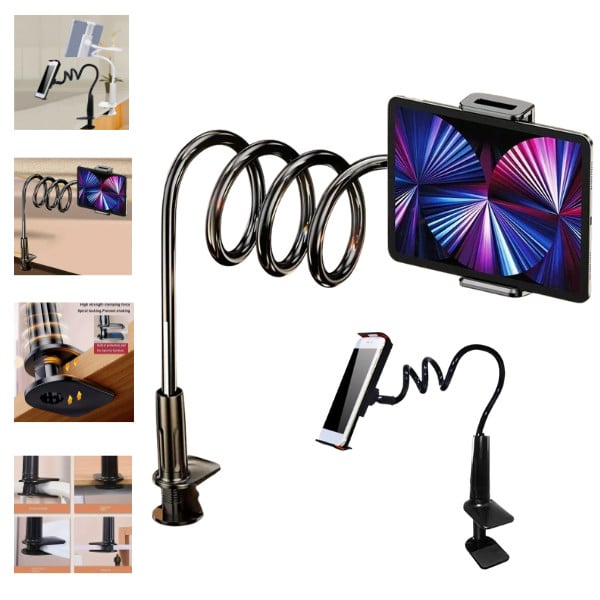 Lazy Arm II Smartphone, Tablet Holder, Ultra Strong and Flexible 78cm Gooseneck Phone Holder for Desk, 360 Adjustable Phone Stand for Bed, Super Grip Wide Clamp, Flexible Phone Holder for Bed